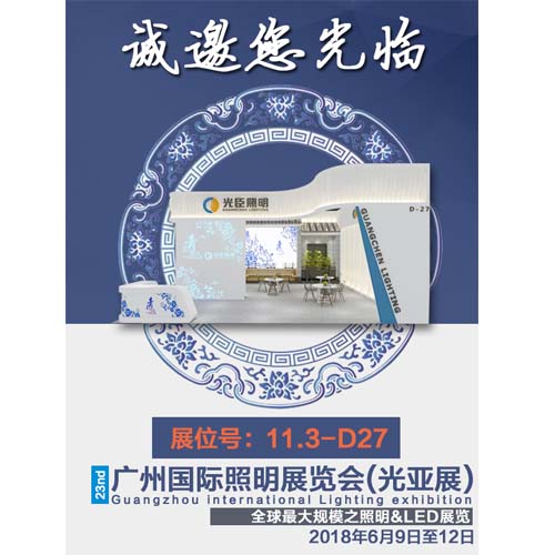 瀏覽:-第23屆廣州國際照明展覽會(又稱:光亞展)于2018年6月9日-12日,在廣州琶洲展館舉行。光臣照明每年也會參與這一行為盛事。我們在B區11.3-D27展位恭候您的光臨。