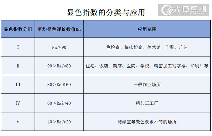 以下是關于顯色指數的分類與應用: