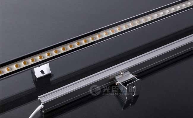 該建筑的外墻屬于異性墻面,根據亮化方案,安裝時對應建筑物的異性規則面分為頂部安裝和底部安裝,每個部位的投射面積要求不大,所以選用了黃光2819貼片帶透鏡LED洗墻燈而且2819洗墻燈,2819洗墻燈的體積相對來說比較嬌小,很適合安裝在這樣的墻面上。