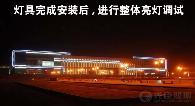 本次項目僅運用了2819線條燈作為亮化燈具,那么有朋友就有疑問了,中間部份是點光源吧?其實不然,中間部份的效果是短尺寸的2819線條燈做成的。一眼望去就像一條通往著全國各地的鐵路一樣,此亮化效果的寓意相當特別。
