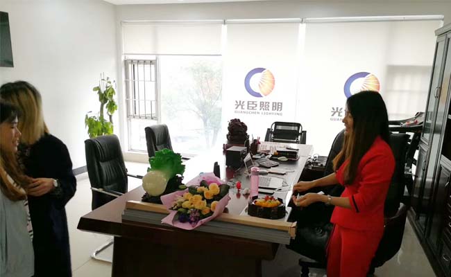下午15:30分一切材料準備就緒,光臣照明的“團伙們”一起集合起來,捧著蛋糕、拿著鮮花,給在辦公室里頭認真工作的鄭經理一個小小的驚喜,歌聲響起來:“祝你生日快樂...祝你生日快樂...祝你生日快樂...祝您生日快樂....”每個人來到這個世界上都應該是被愛的,而被愛的人同樣也會給其他人施予愛,這就是愛的循環。
