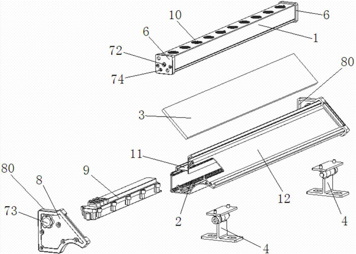 生產(chǎn)一支太陽能洗墻燈需要:蓄電池、燈體與燈體活動(dòng)連接的太陽能光伏組件以及控制器;所述燈體內(nèi)部設(shè)置若干個(gè)LED燈珠;蓄電池、太陽能光伏組件、LED燈珠與控制器電性連接;