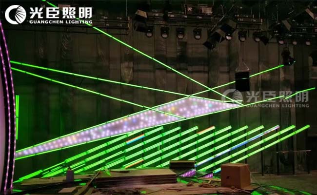 本次項目選用光臣照明2316-DMX512線條燈、50MM 512像素點光源、6560線條燈。三燈齊亮效果十分炫麗!本次完工的新演播廳將會在春節(jié)期間播放精彩的節(jié)目,請關(guān)注太原長治衛(wèi)視臺的精彩表演哦!
