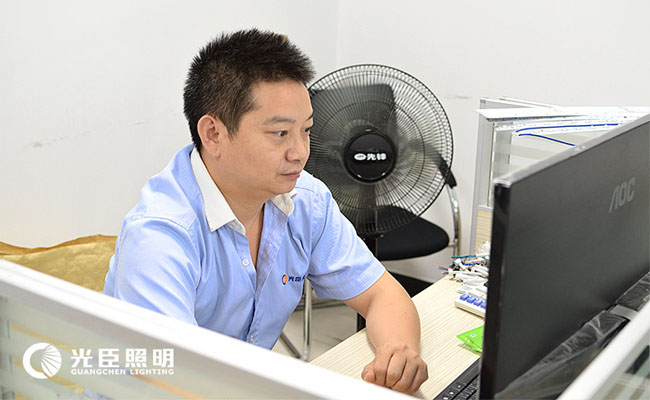 在公司里總能看見他忙碌的身影,一會來客戶咨詢、一會到測驗室測試燈具、更多的是坐在電腦面前研發改良產品,夏工對產品熟悉是因為光臣照明所有的燈具都是通過夏工去設計電路、檢驗用料等,摸爬滾打20年,每一道生產工藝他都了如指掌。所以對于燈具的性能、調試等各方面技術問題他都能迎刃而解。