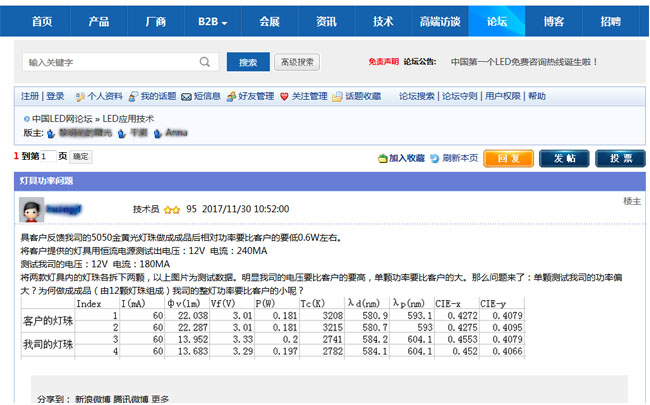 我們來說說光通量和功率的關系吧,需要專業術語描述的小編得讓工程師回答,您可以在線留言哦!話說回來想聽簡單一點的小編就理一理這關系吧,光通量的大小是通過電功率的轉化。所以從圖中我們能看出,盡管這位仁兄家的燈珠功率大于客供燈珠,但是它所轉化出來的光通量遠低于客供燈珠。總的來說,他家LED光源質量有待改進,按光臣照明工程師的回復以及各大神底部留言:“這是打臉的節湊,啪啪啪的打臉聲...”