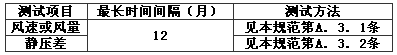 表A.2.2-2 靜壓差、風(fēng)速或風(fēng)量測試