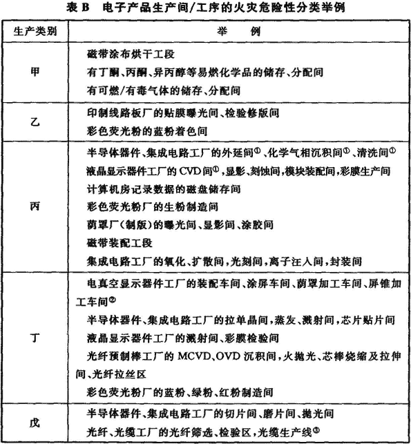 附錄B 電子產(chǎn)品生產(chǎn)間/工序的火災(zāi)危險性分類舉例