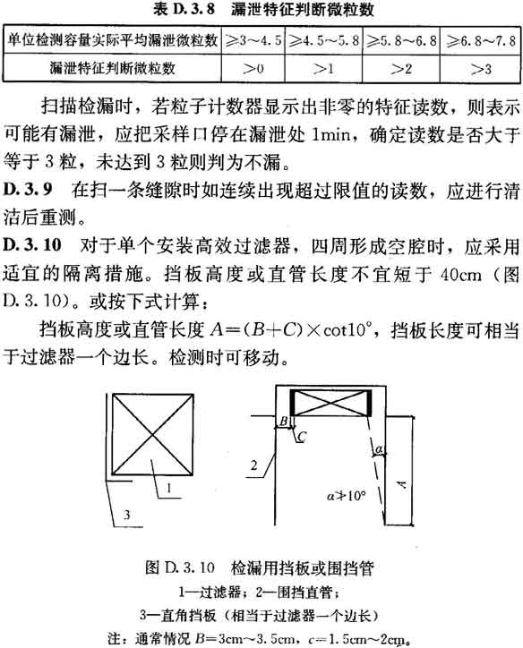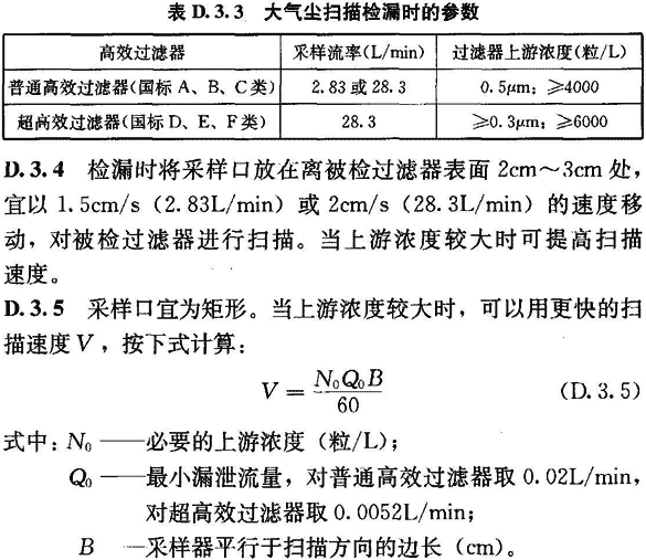 D.3.7 掃描檢漏時應拆去高效過濾器外的孔板或裝飾層,掃描面積應稍有搭接。