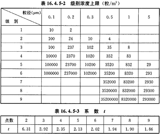 16.4.5 空氣潔凈度級別應按附錄E檢驗微粒計數濃度,然后按以下程序計算出空氣潔凈度級別并評價。