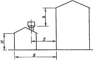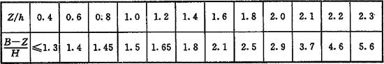 注:當Z/h>2.3時,建筑物的相關尺寸可不受限制。